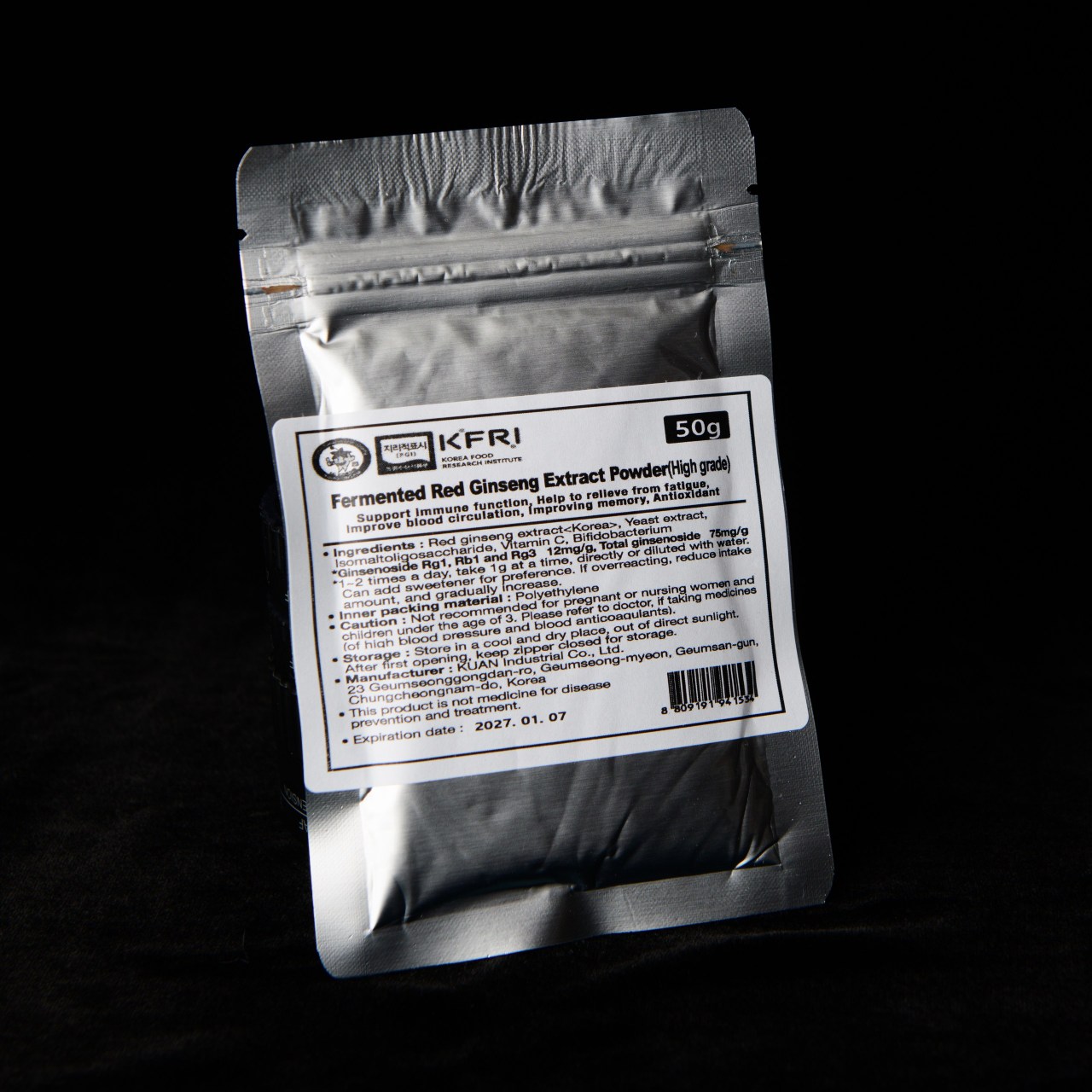 Ферментированный (дополнительно обогащенный) красный корейский женьшень из Южной Кореи в виде пудры (порошок сверхмелкого помола для лучшей усваиваемости).