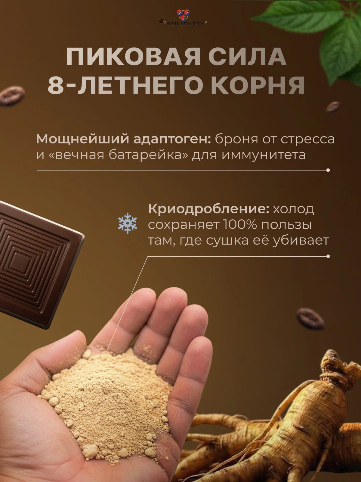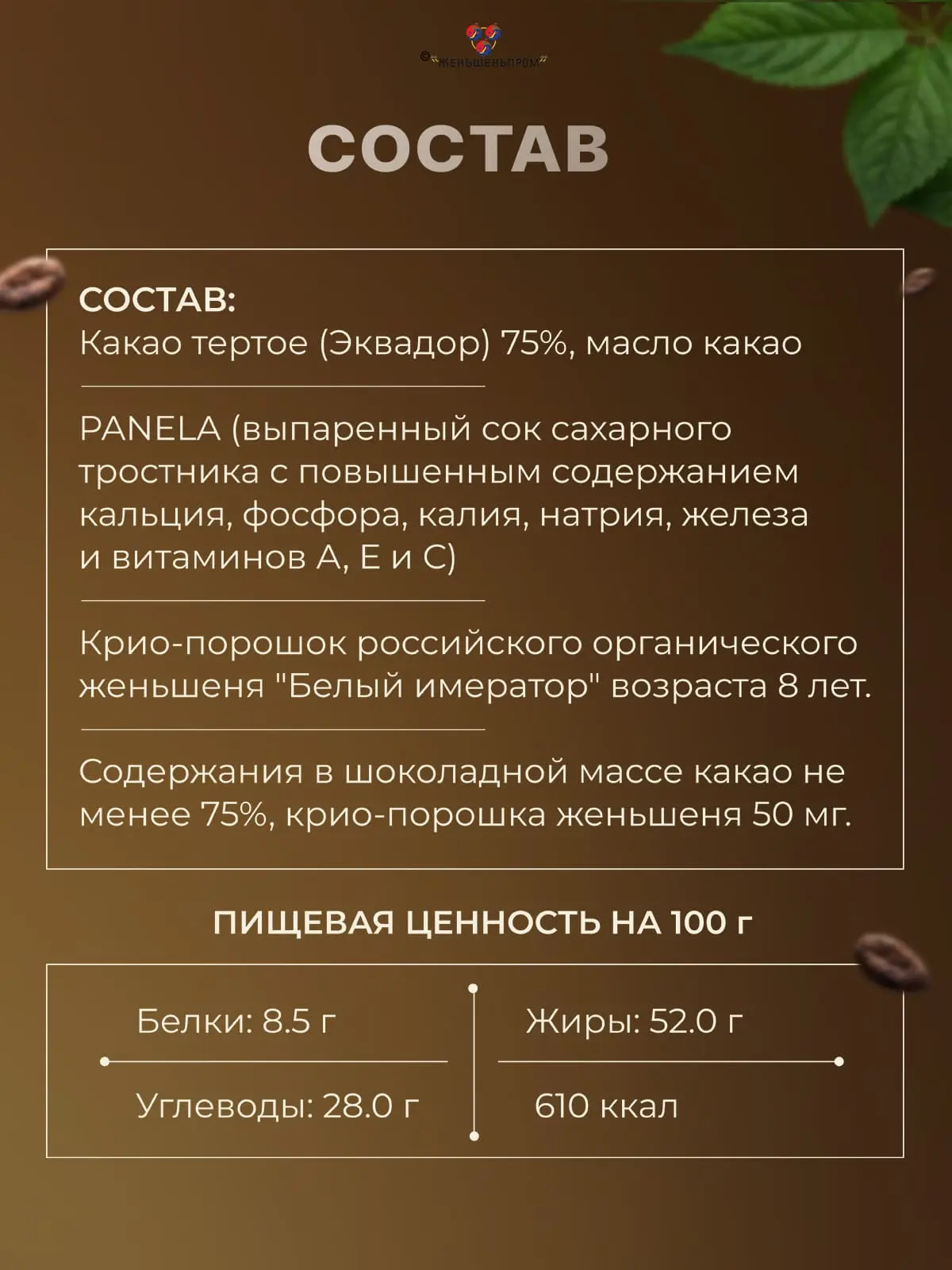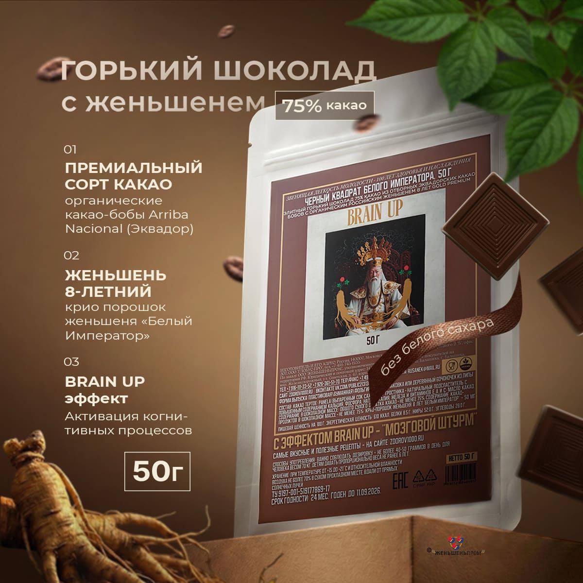 Чёрный квадрат БЕЛОГО ИМПЕРАТОРА, 50 г шоколад с женьшенем — природная поддержка вашего организма