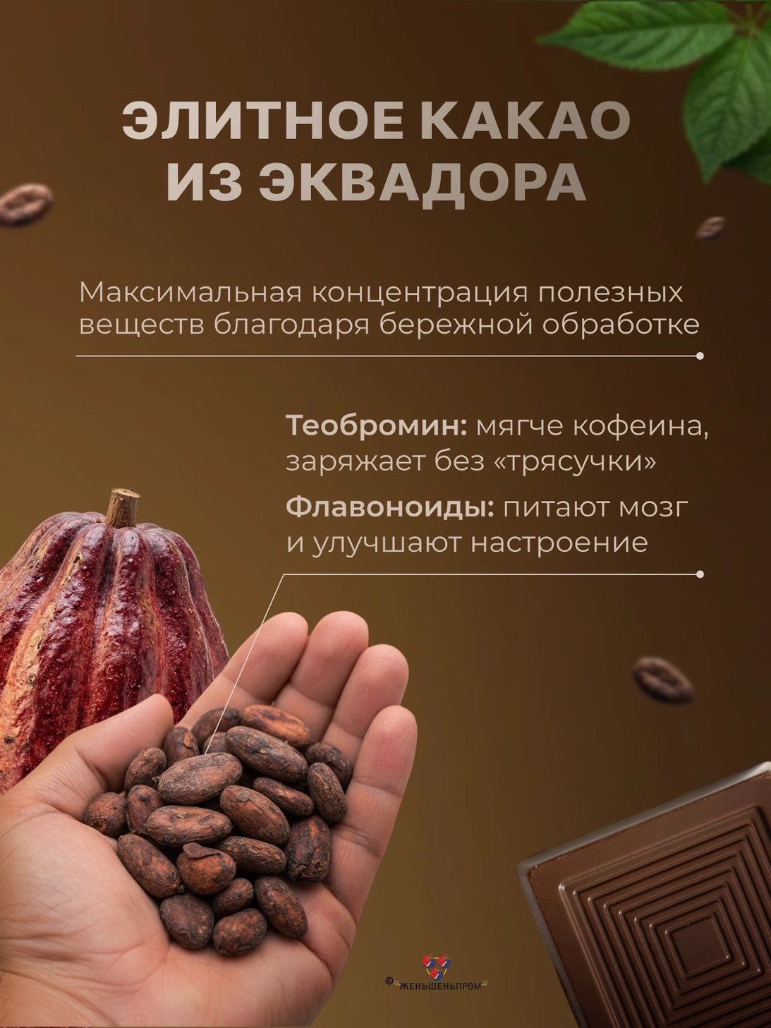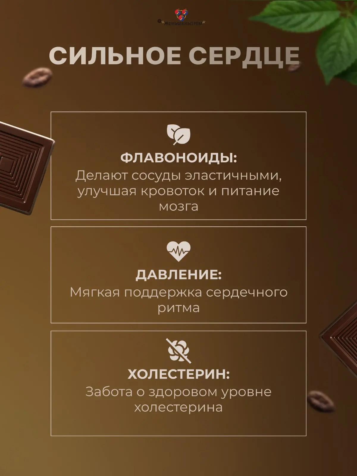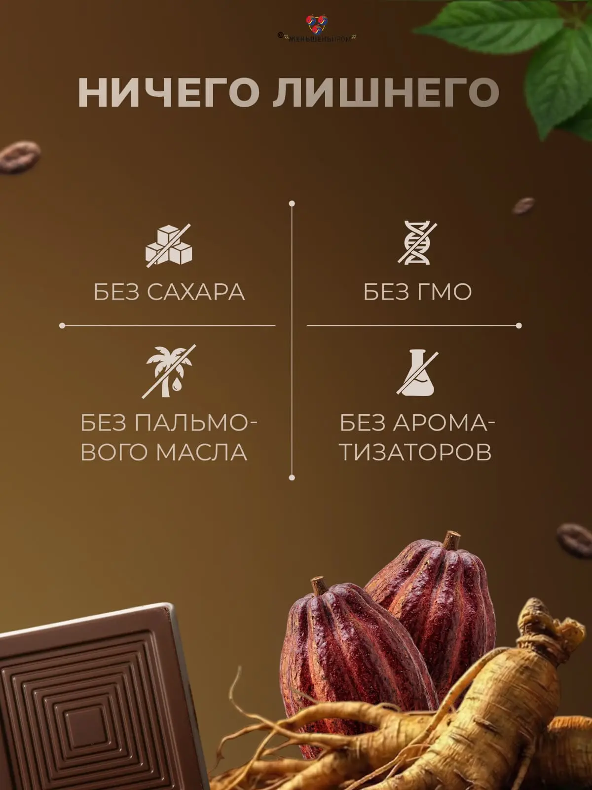 Чёрный квадрат БЕЛОГО ИМПЕРАТОРА, 50 г шоколад с женьшенем — природная поддержка вашего организма