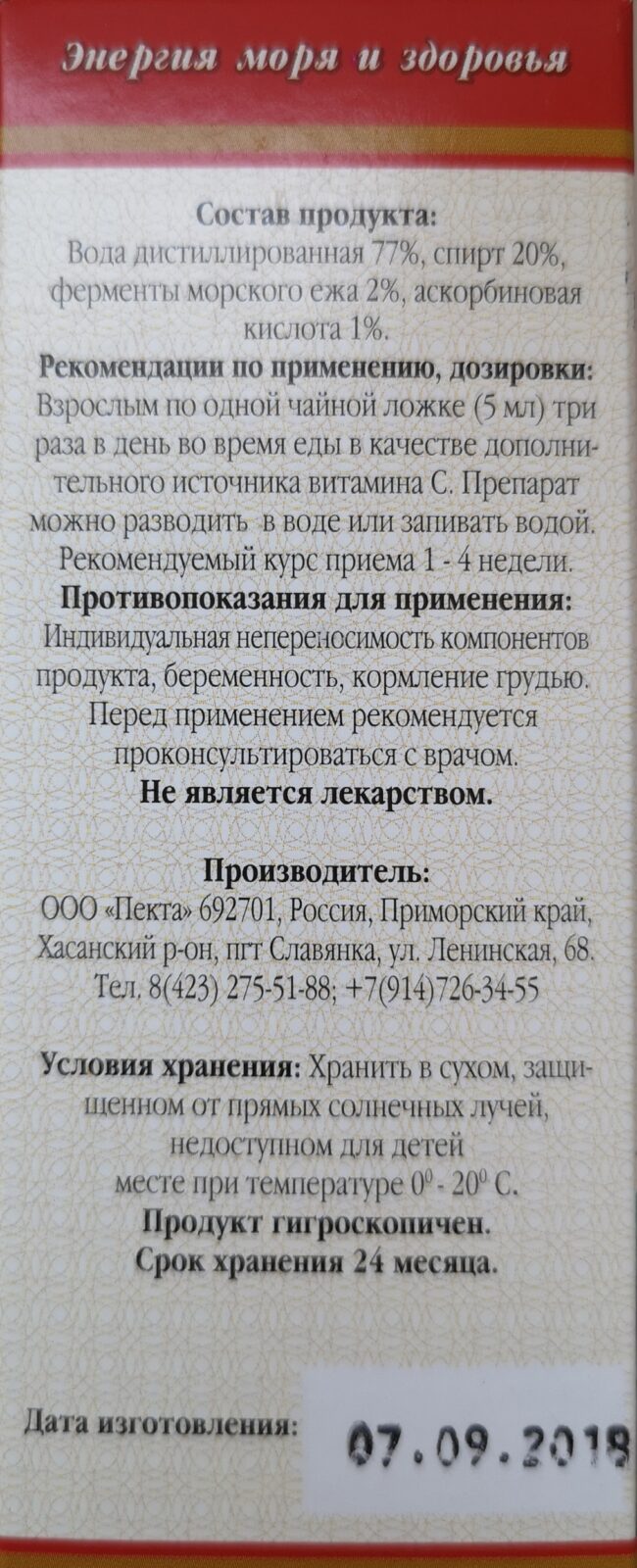 Экстракт морского ежа — биологическая активная добавка к пище (Extractum Strongylocentrotus) … Доступно для заказа в Vivatonshop с доставкой.