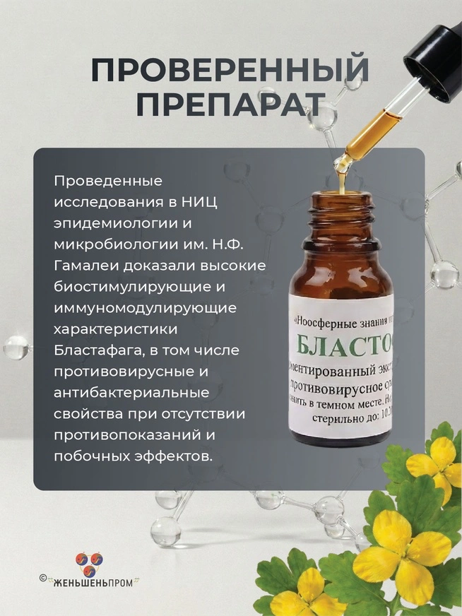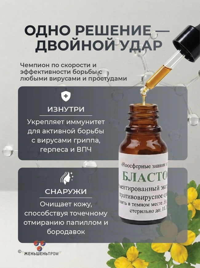 БЛАСТОФАГ интраназальный — это инновационный препарат растительного происхождения, который является результатом многолетних исследований в области микробиологии и натуропатии. В основе препарата лежит уникальная технология двухэтапной ферментации чистотела с использованием специфических штаммов полезных микроорганизмов. Этот процесс позволяет выделить активные действующие вещества, которые обладают избирательным действием: они атакуют только поврежденные вирусами или опухолевыми процессами клетки, оставляя здоровые ткани абсолютно нетронутыми.