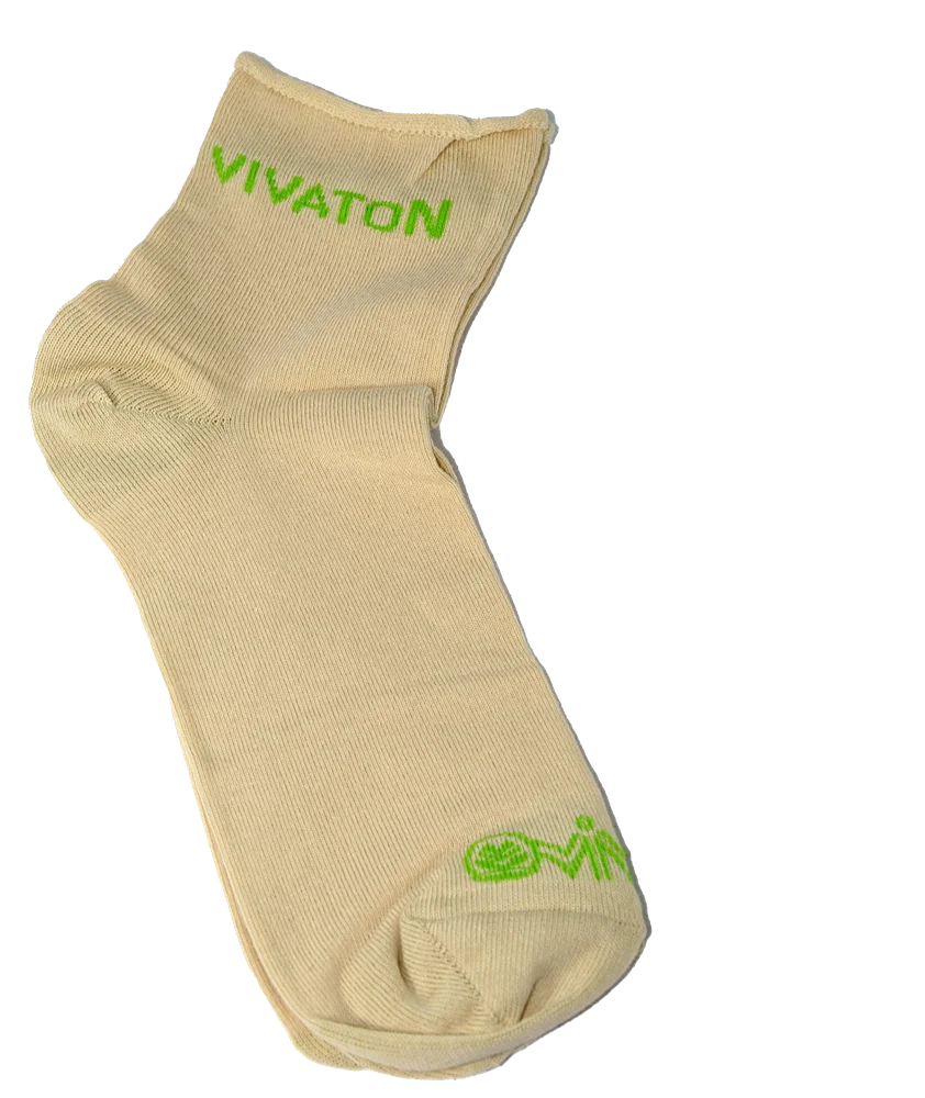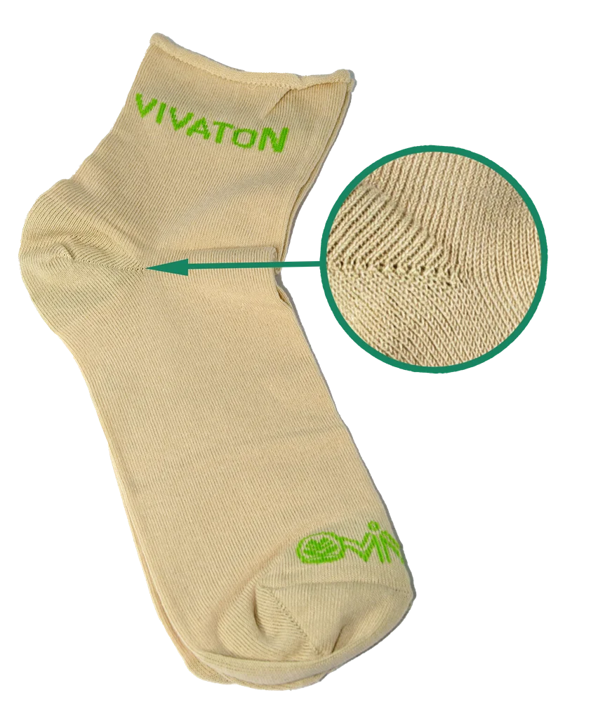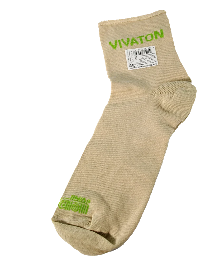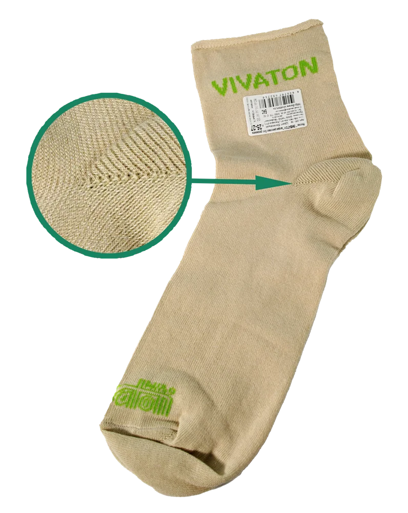 Состав изделия включает 76% натурального хлопка, что позволяет коже «дышать». Кроме того, добавление лайкры (21%) придает носкам необходимую эластичность. Безусловно, забота о ногах должна быть комплексной, поэтому мы рекомендуем сочетать ношение трикотажа с использованием нашего питательного крема Виватон. Это поможет сохранить кожу стоп мягкой и здоровой.