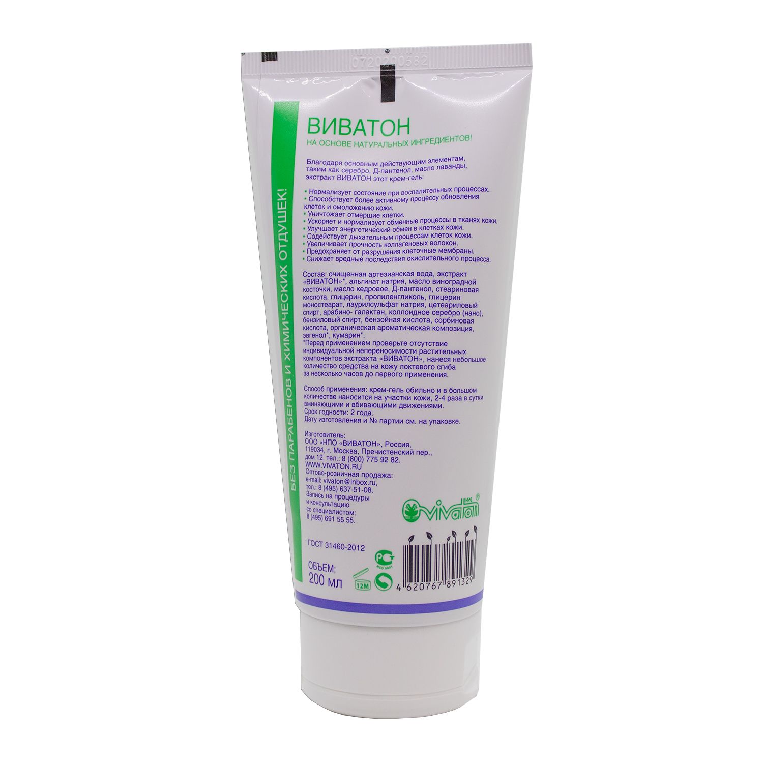Благодаря основным действующим элементам, таким как серебро, Д-пантенол, маcло лаванды, экстракта «ВИВАТОН» крем-гель для сухой кожи: