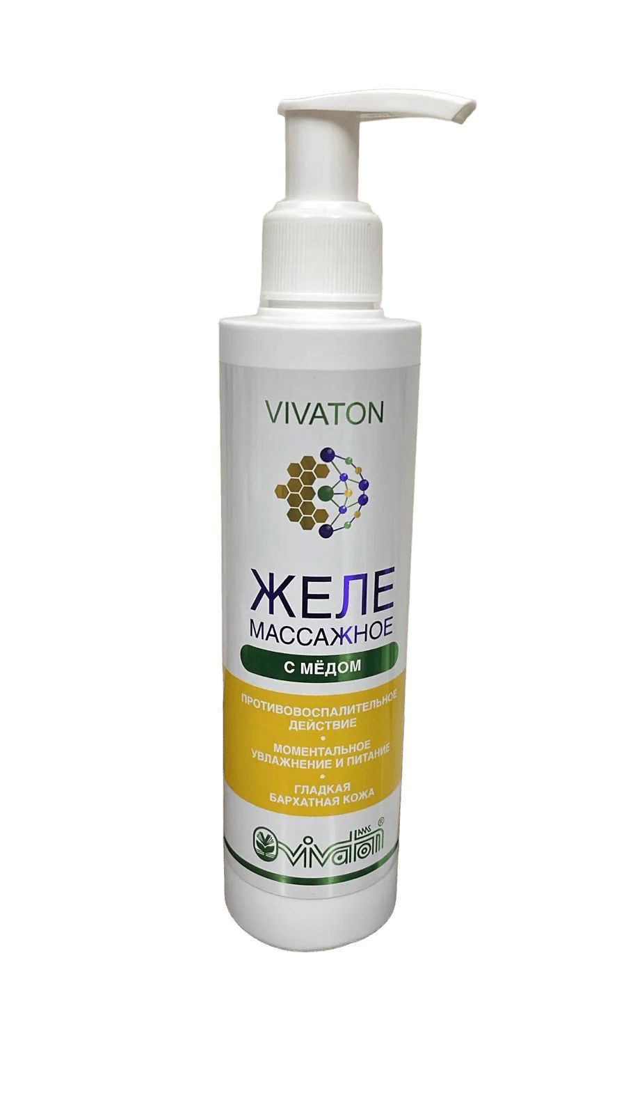 Желе массажное «ВИВАТОН» с медом окажет противовоспалительное и обезболивающее действие, улучшит кровоснабжение и микроциркуляцию крови в тканях и органах, тонизируя организм в целом, поможет снять раздражение и воспаление. Благодаря богатому компонентному составу меда, желе напитает вашу кожу витаминами, органическими кислотами, минеральными веществами, хорошо увлажнит и смягчит.