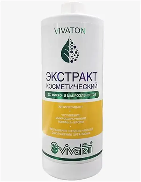 Экстракт «ВИВАТОН» — это уникальный многофункциональный продукт, созданный на основе сбора лекарственных растений. По своему ингредиентному составу он максимально приближен к плазме крови, обеспечивая глубокое питание и восстановление организма через кожу.Благодаря 207 натуральным ингредиентам в легкоусвояемой форме, Экстракт "ВИВАТОН" является незаменимым средством для выполнения оздоровительных процедур по авторской методике.